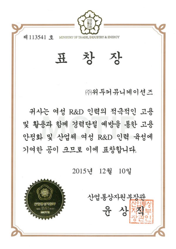 산업통상자원부 표창장 페이지 정보 작성자 WeDu 댓글 0건 조회 6,723회 작성일 19-05-30 19:34 본문 2015-12-10 표창장 제 113541호 여성 R&D 인력 고용 산업통상자원부장관 윤상직 List Previous서울클러스터 어워드 우수상 19.05.30 Next감사장 제 143호 19.05.30