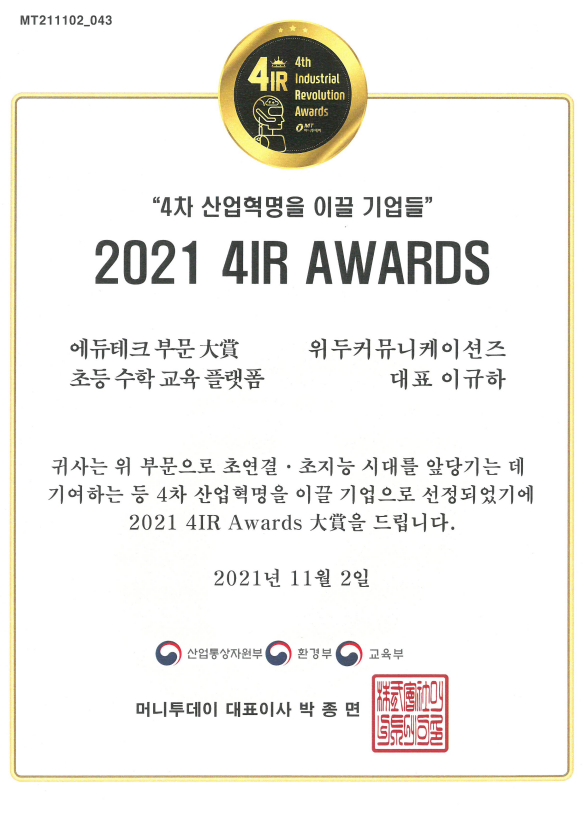 2021 4IR AWARDS 대상 페이지 정보 작성자 WeDu 댓글 0건 조회 11,446회 작성일 21-12-31 13:01 본문 2021-11-02 2021 4IR AWARDS 대상 머니투데이 List Previous2021 소년한국 우수 어린이 도서 22.01.06 Next2020 소년한국 우수 어린이 도서 선정 21.12.31